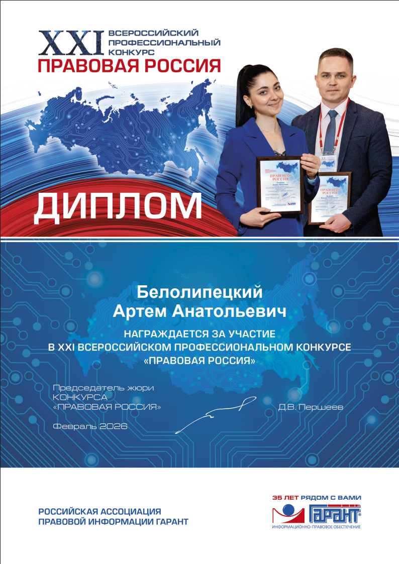 Российская ассоциация правовой информации ГАРАНТ объявляет XXI Всероссийский профессиональный Конкурс "ПРАВОВАЯ РОССИЯ".